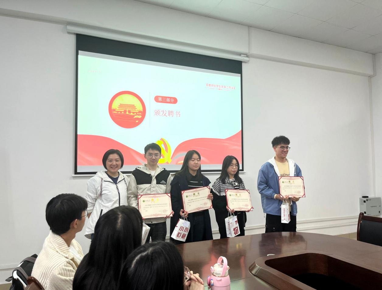 betway西汉姆联平台学生党务工作站指导老师王燕晶为上一届工作站成员颁发聘书并合影留念。
