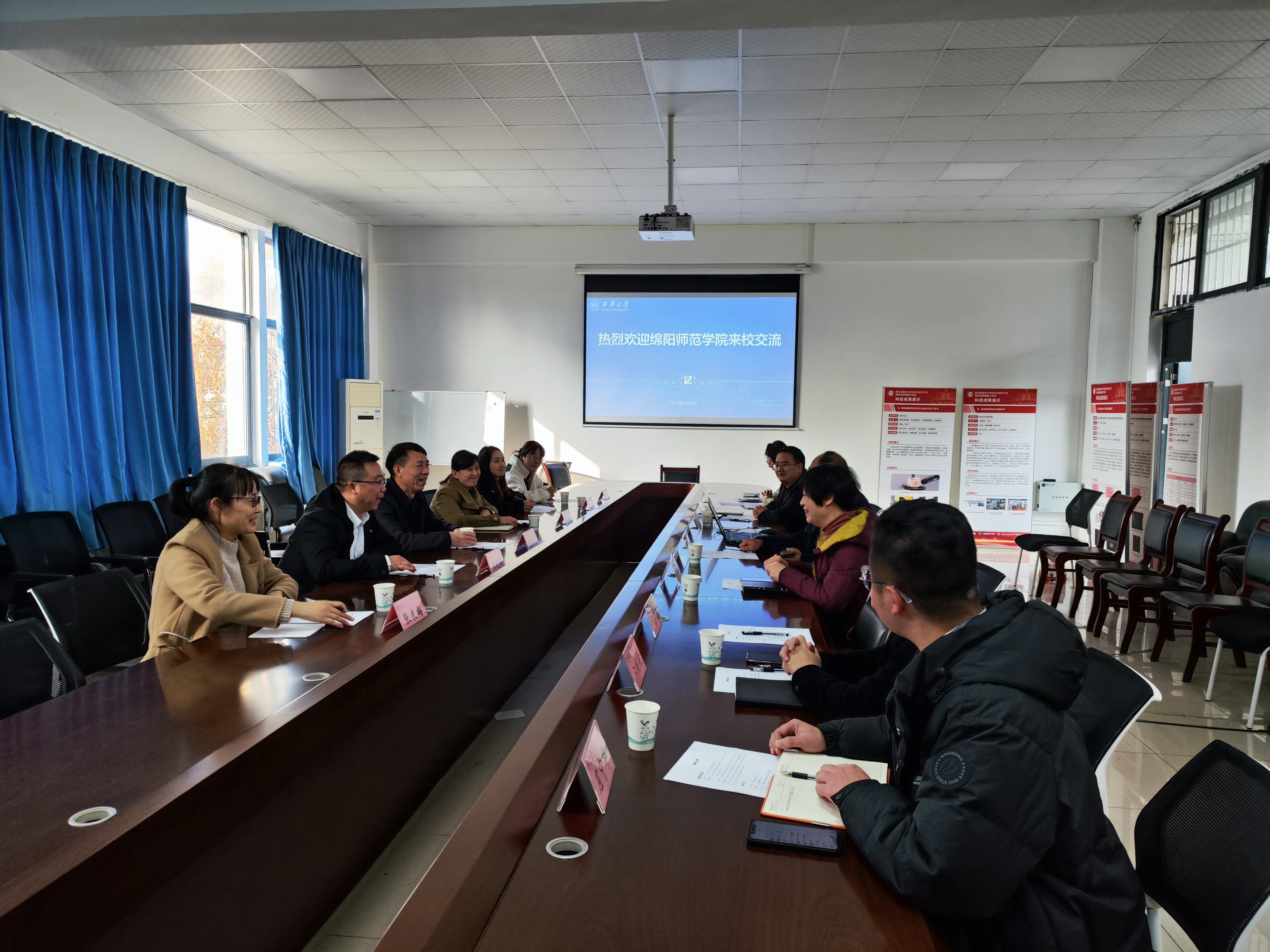 2023年12月4日下午,绵阳师范学院化学与化学工程学院党委书记龙武安、党委副书记黄海霞、副院长王晓军、辅导员张寒梅、杨娟、赵玲一行6人莅临西华大学betway西汉姆联平台调研交流党建工作。betway西汉姆联平台党委书记裴峥、院长王周玉、专职组织员王燕晶、化学专业教师党支部书记张国麒、支委江明航、屈中华、罗晓俊参加了调研。