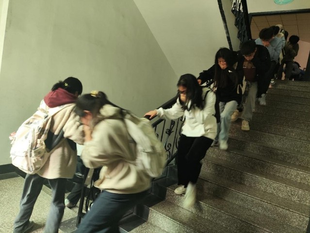 图3 同学们进行火灾疏散演练