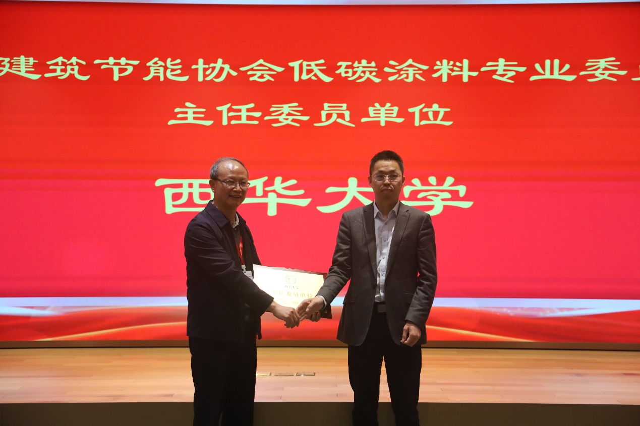 大会上,西华大学荣任低碳涂料专业委员会的主任委员单位;西华大学物理系教师,前校长孙卫国教授,荣任低碳涂料专业委员会的主任委员;西华大学物理系主任付佳教授荣任专业委员会副秘书长。标志着西华大学在低碳涂料领域的研究取得了行业的高度认可。