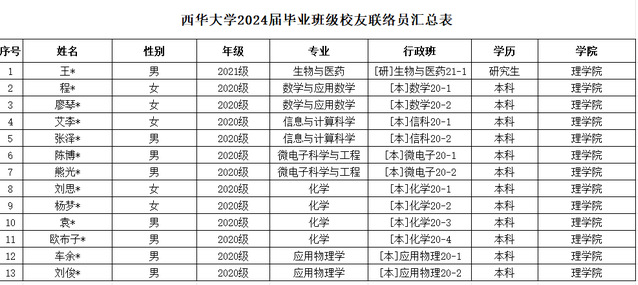 betway西汉姆联平台2024届毕业班级校友联络员