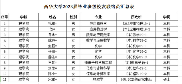 betway西汉姆联平台2023届毕业生班级校友联络员