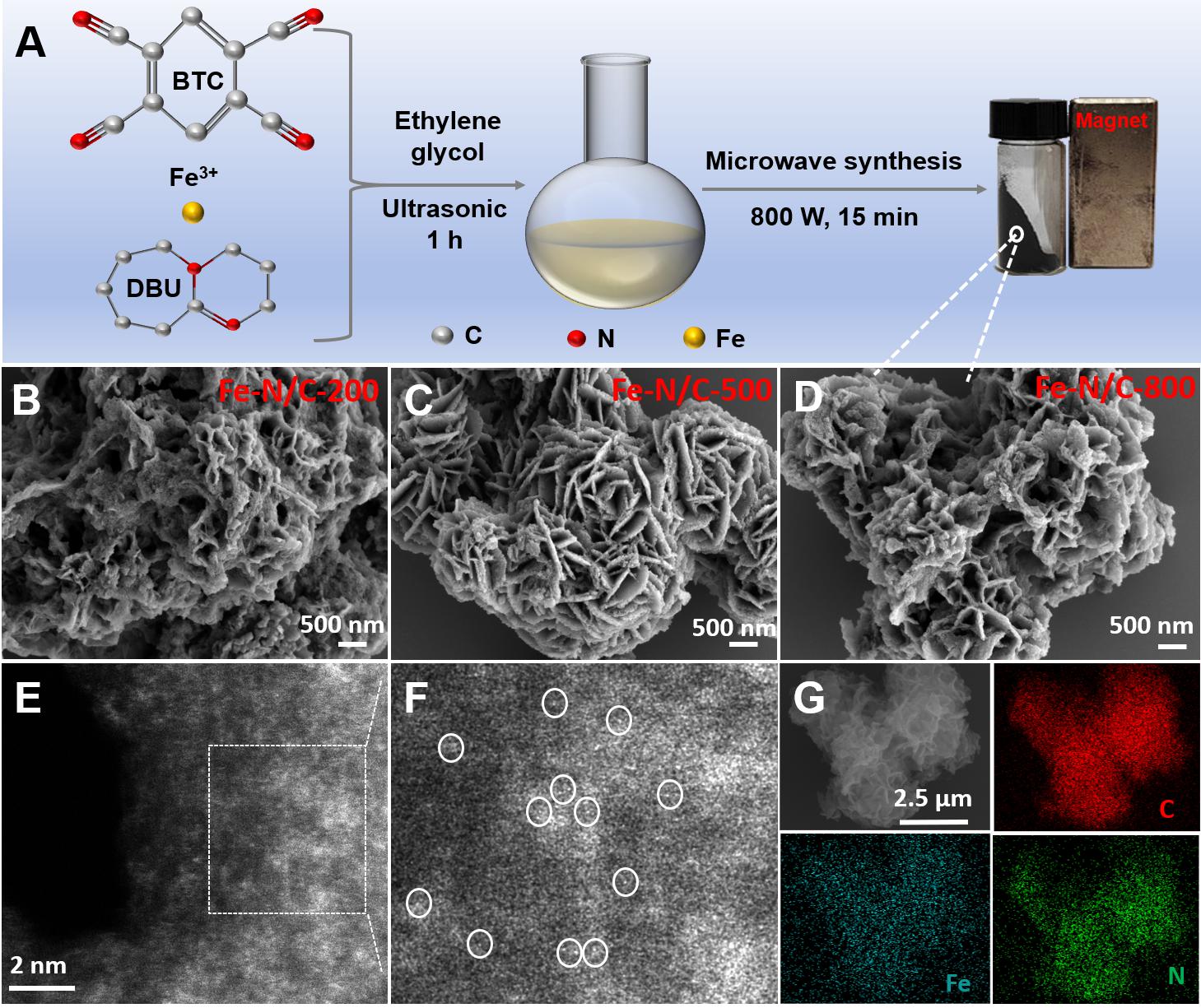 铁锚定氮/掺杂碳单原子纳米酶(Fe-N/C)具有均匀的活性位点和可调节的催化环境,是研究结构-功能关系和催化活性的典范模型。然而,开发非热解、模拟酶活性可调的Fe-N/C合成技术仍然是一个重大挑战。