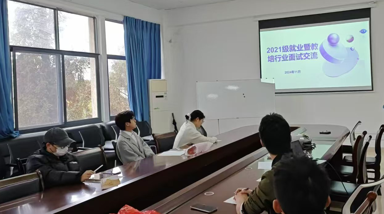会上,主持人首先介绍了教资面试的流程,重点讲解了试讲的注意事项与技巧。随后在场的学生依次进行试讲练习,并根据学生试讲表现,进行讨论交流。最后请多次参与了就业面试的学生进行了面试经验分享。