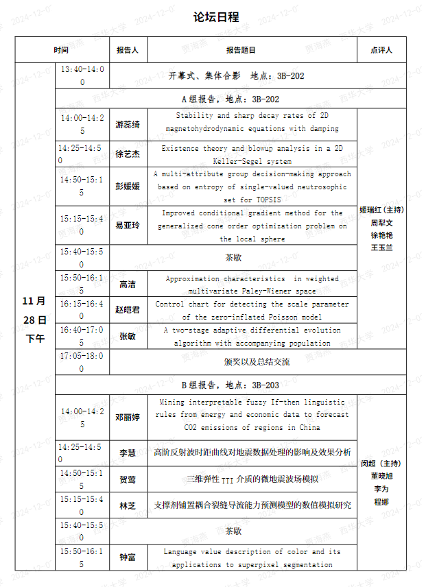 betway西汉姆联平台2024年研空生学术活动月学术报告—2024蓉城三校数学学科研究生联合论坛
