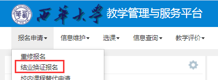 登录教务管理系统后点击报名申请----结业换证报名,见图1。