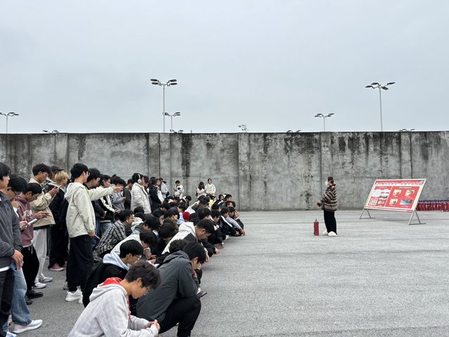 活动期间,安全员讲解灭火器使用原理与操作步骤,指导师生进行“一提、二拔、三握、四压”实操演练,师生们依次参与,熟练掌握灭火技能,有效提升应急处置能力。各班级同步召开消防主题班会,通过案例视频、知识讲解等形式,剖析火灾隐患危害,普及火场逃生、初期火灾处置等知识,引导学生强化安全防范意识。与此同时,学院组织辅导员、学生干部开展寝室安全排查,重点检查违规电器、私拉乱接电线等隐患,及时督促整改,从源头杜绝火灾风险。