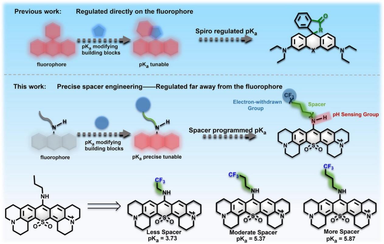 图2 已报道的pKa调控策略以及本研究提出的基于间隔基的pKa调控新策略