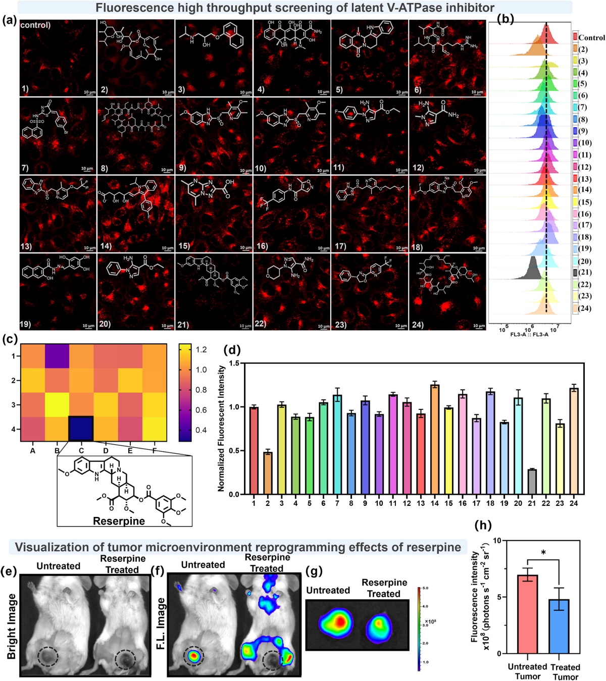 图4 高通量筛选潜在的V-ATP酶抑制剂以及监测利血平诱导的肿瘤微环境重编程