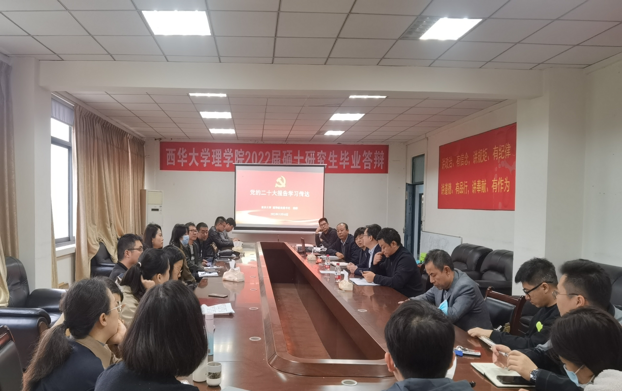 会上,科学技术与人文社科处处长郎方年围绕平台、经费、报奖三个方面介绍了当前申报博士点建设的要求,提出希望大家一起努力,为西华大学有更好发展贡献一份力量。管betway西汉姆联平台党委书记肖东华传达了学校党委理论学习中心组列席旁听工作的要求,并强调了认真学习宣传党的二十大精神的重要意义。随后,betway西汉姆联平台党委书记裴峥带领大家学习党的二十大报告、新党章以及《十九届中央纪委向党的二十大的工作报告》等,并指出目前学院面临的困难,希望教职工能够心怀“国之大者”,提高政治站位,做好“立德树人”的榜样,沉下心来为学院的教学科研高质量发展贡献力量。切实增强“四个意识”、坚定“四个自信”、做到“两个维护”、始终贯彻“两个确立”;牢记空谈误国、实干兴邦,坚定信心、同心同向、埋头苦干、团结奋斗,为学院、学校和国家社会主义现代化建设做出应有的贡献。