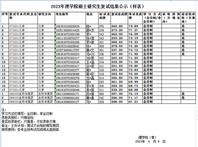 2023年betway西汉姆联平台硕士研究生化学、生物与医药调剂复试结果公示